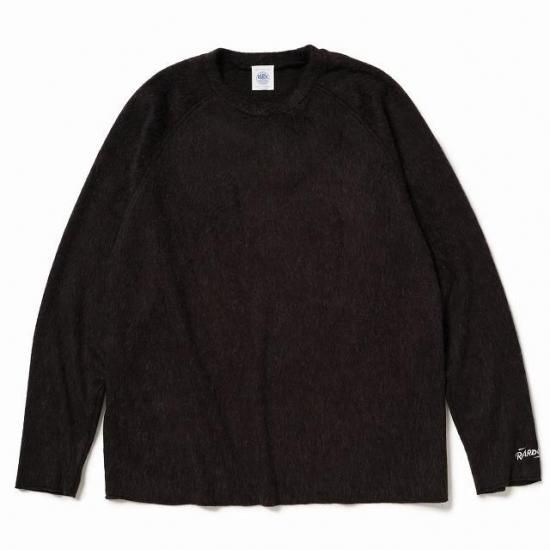 袖はラグランで袖口と裾は切りっぱなしをロックで仕上げています。