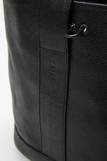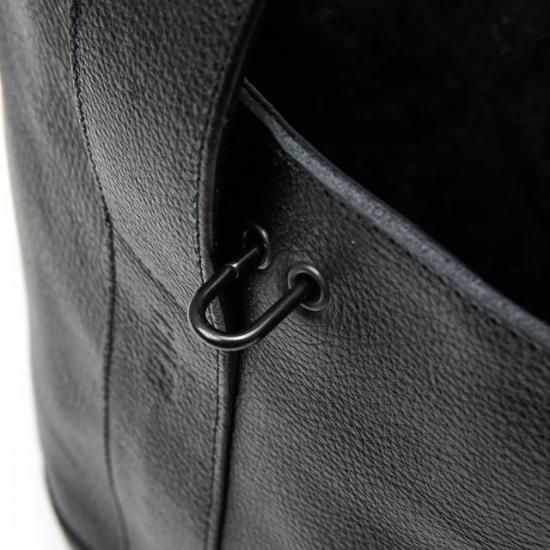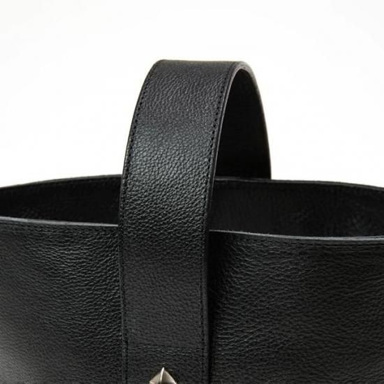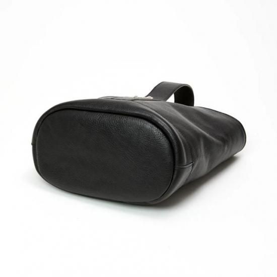 シボ感あるレザーで作製されたバケットバッグ。シボが特徴のレザーで使い込む程に、シボ感が消え、光沢感が出てくる経年変化。