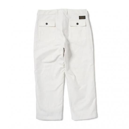 厚手のコットンモールスキン生地をアウトシェルに、裏地には肌触りの良いマイクロフリースを搭載したM-47 型、通称BAKER PANTS。