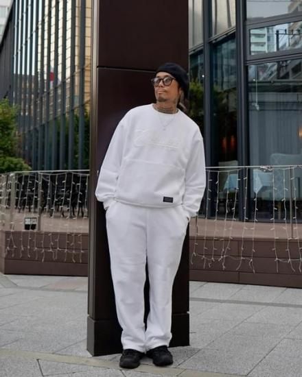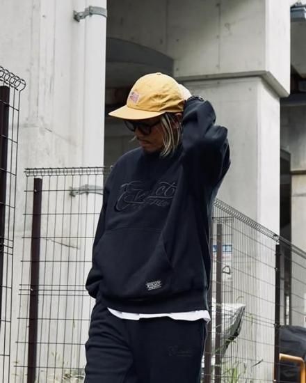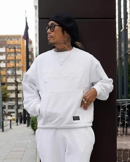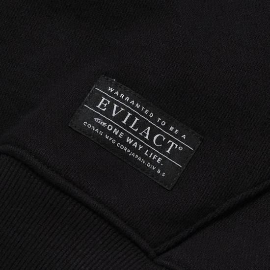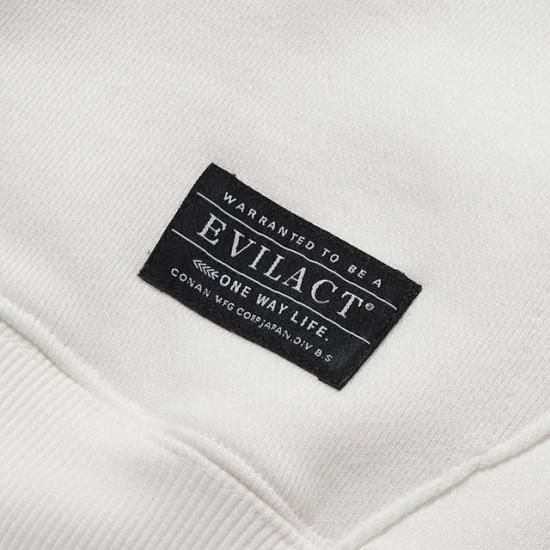 クルーネックには珍しいカンガルーポケットも搭載しフロントにEVILACT LOGOが贅沢に 同色刺繍。
