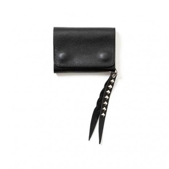 シボ感あるプレーンレザーにスタッズチャームを施して作製された3つ折りウォレット。レザーは使い込む程にシボが消え、艶感ある経年変化を楽しむ事が出来る。また、収納もしっかりと確保し、使い勝手の良いウォレットに仕上がっている。