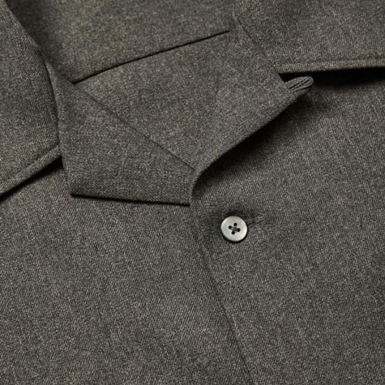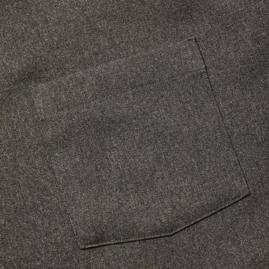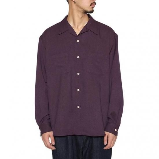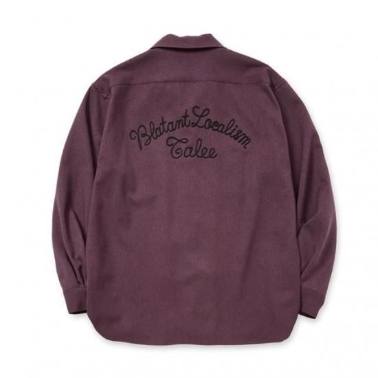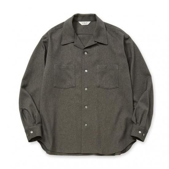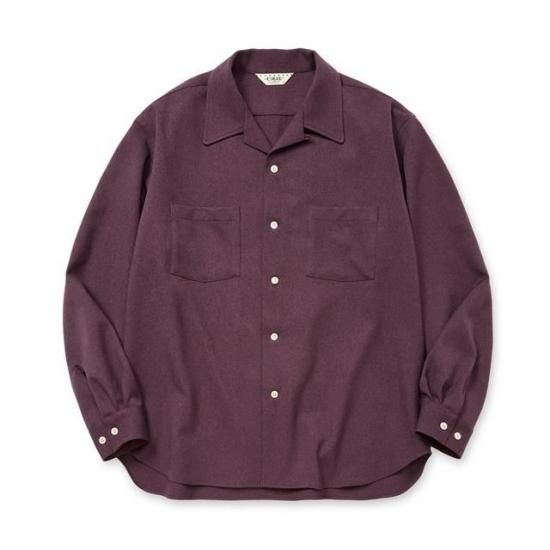 オープンカラーラウンドL/Sシャツ。ポリエステル製ウールライクファブリックを採用。綾立ちが綺麗で膨らみもありウールの雰囲気を出しながらも、イージーケア性に優れ、ピリングもしにくいなど、デメリットを解消したユーティリティー素材。バックに刺繍が入る。