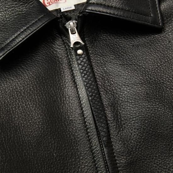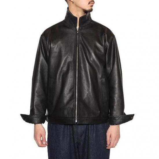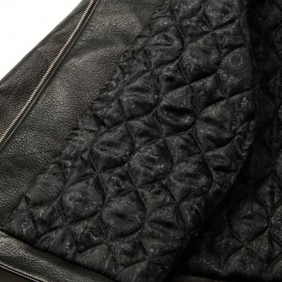レザースウィングトップ。国産の牛革、クロームレザーを使用した国内生産のレザージャケット。裏地はオリジナルペイズリー柄の中綿キルト、襟裏、袖裏、引き手に蛇革を使用。