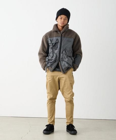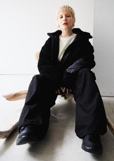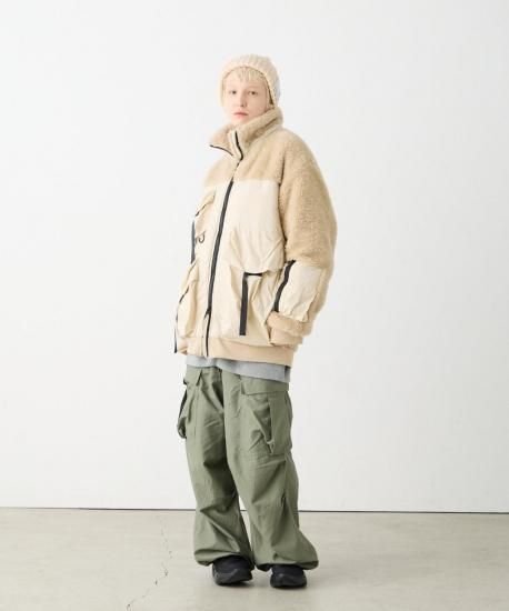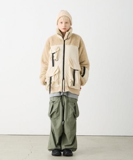 ワイドシルエットのボアジャケット。アウトドアとミリタリーを融合させた個性あふれる一着。