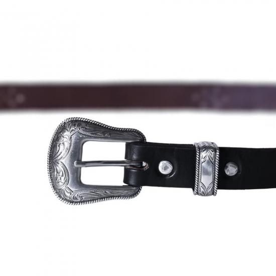 バックル、ベルトループ、剣先に装飾金具を取り付けた雰囲気ある1本。